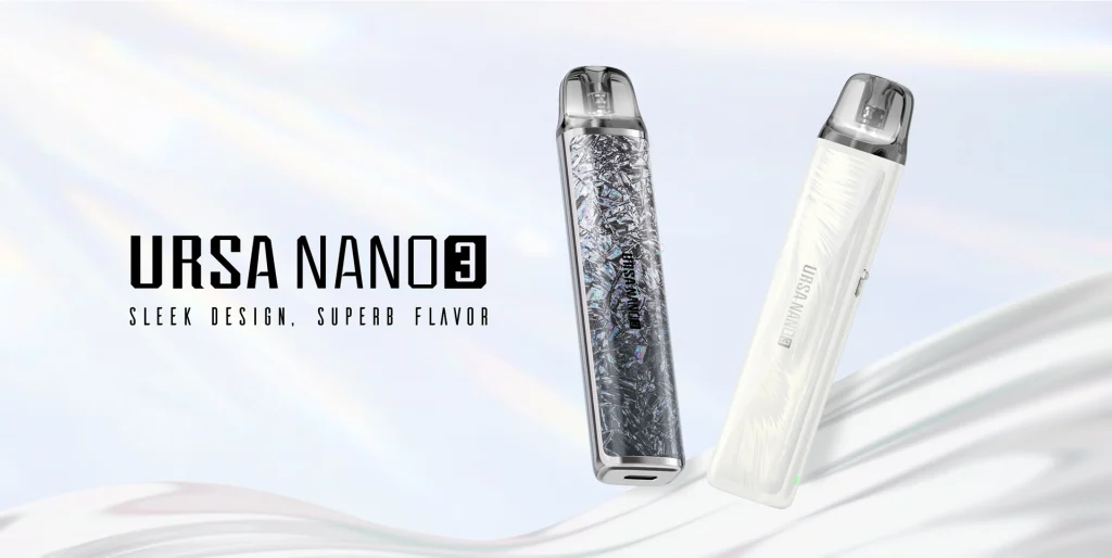 Ursa Nano 3 , oferuje maksymalną moc wyjściową 30 W i baterię 1200 mAh, zapewniającą do 4 dni użytkowania i jest kompatybilny z wkładem URSA Cartridge V2. która zapewnia długi czas użytkowania na jednym ładowaniu. Dzięki technologii szybkiego ładowania, użytkownicy nie muszą długo czekać na naładowanie urządzenia. Wbudowany port USB-C sprawia, że ładowanie jest jeszcze bardziej wygodne i efektywne.